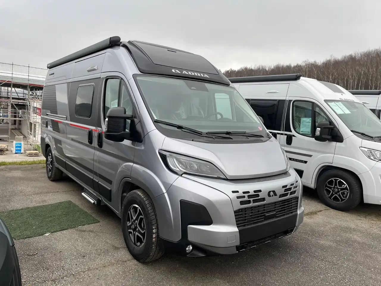- 60Y SERIENAUSSTATTUNG (Motorisierung 140 Multijet, 103 kW, 140 PS, Chassis 3500 kg Maxi, Automatik-Getriebe, Airbag Fahrer + Beifahrer, ABS, ASR, ESP, 16" Leichtmetall-Felgen, Lenkrad in Lederoptik, Lenkradbedienung und Antenne im Außenspiegel, Klimaanlage Fahrerhaus, Komfort-FH-Sitze mit Armlehnen im 60Y-Design, Fahrerzeuglackierung Silber-Grau Metallic, Frontstoßfänger lackiert, Nebelscheinwerfer, DC/DC-Wandler (Lichtmaschinen-Booster), Plissee-Verdunkelung Fahrerhaus, Fliegenschutz an Schiebetür, Wohnraumfenster mit Rahmen, Hubbett elektrisch, Komfort-Tisch mit Verlängerung und Becherhalter, Isofix, Evopore Schaumstoffmatratze, Spülen-Abdeckbrett im 60Y-Design, Abwassertank isoliert, beheizt, TV-Halterung, Adria MACH basic)