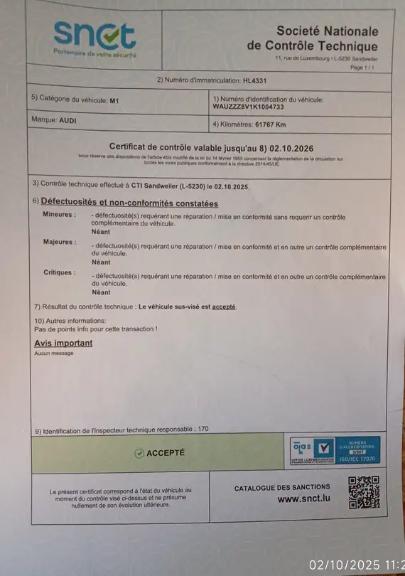 Perfect CT / TUV in October.
