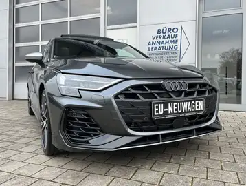 Audi S3 Sportback 2.0 TFSI 245kW/333PS quattro m. S-tronic Automatikgetriebe, EU-Neufahrzeug m. Tageszulassung, 3-Zonen Klimaautomatik "Climatronic", Sitzheizung für Vordersitze, Tempomat m. adaptivem Fahrassistent u. adaptiver Abstandsregelung (ACC) inkl. "Audi pre sense" m. Notbremsfunktion, Mittelarmlehne vorne in Leder m. Staufach, Ambientebeleuchtung, 3-Speichen "S" Multif.-sportlederlenkrad (unten abgeflacht) m. Schaltwippen für S-tronic, Audi virtual Cockpit plus (volldigitales Kombiinstrument), Radio/Navigationssystem "MMI Navigation plus" m. "MMI Touch" u. Touchscreen Farbdisplay, DAB-Funktion, Bluetooth Freisprecheinrichtung m. induktiver Ladeschale, Sprachbedienung, 2x USB-C Anschluss Mittelkonsole, Phone Apps (Apple CarPlay / Android Auto), 12V Anschluss Mittelkonsole, Müdigkeitserkennung, Verkehrszeichenerkennung, Innenspiegel autom. abbl., 4x el. Fensterheber, el. verstell-/beheiz-/anklappbare Außenspiegel (beidseitig autom. abbl), "S"-Sportschalensitze vorne in Leder / Stoff m. Sitzhöhenverstellung u. el. Lordosenstütze, Drive Select (Fahrprofilauswahl), el. Parkbremse, schlüsselloses Öffnen & Starten "Keyless Go", Licht/Regensensor, Spurverlassenswarnung m. Lenkeingriff, Ablenkungswarnung, Notfallassistent, Gefahreninformation, Dachhimmel schwarz, el. Glas Aufstell-/Schiebedach, Innenbeleuchtung LED, geteilt umklappbare Rückbank, 2x USB-C Anschluss hinten, el. Heckklappe m. Komfortöffnung (virtuelles Pedal), Laderaumabdeckung, 12V Anschluss Kofferraum, abgedunkelte Seiten-/Heckscheibe, selbstlenkendes System inkl. Einparkhilfe (PDC) vorne u. hinten, Rückfahrkamera, Matrix-LED-Hauptscheinwerfer inkl. LED-Tagfahrlicht, 19" Leichtmetallräder.