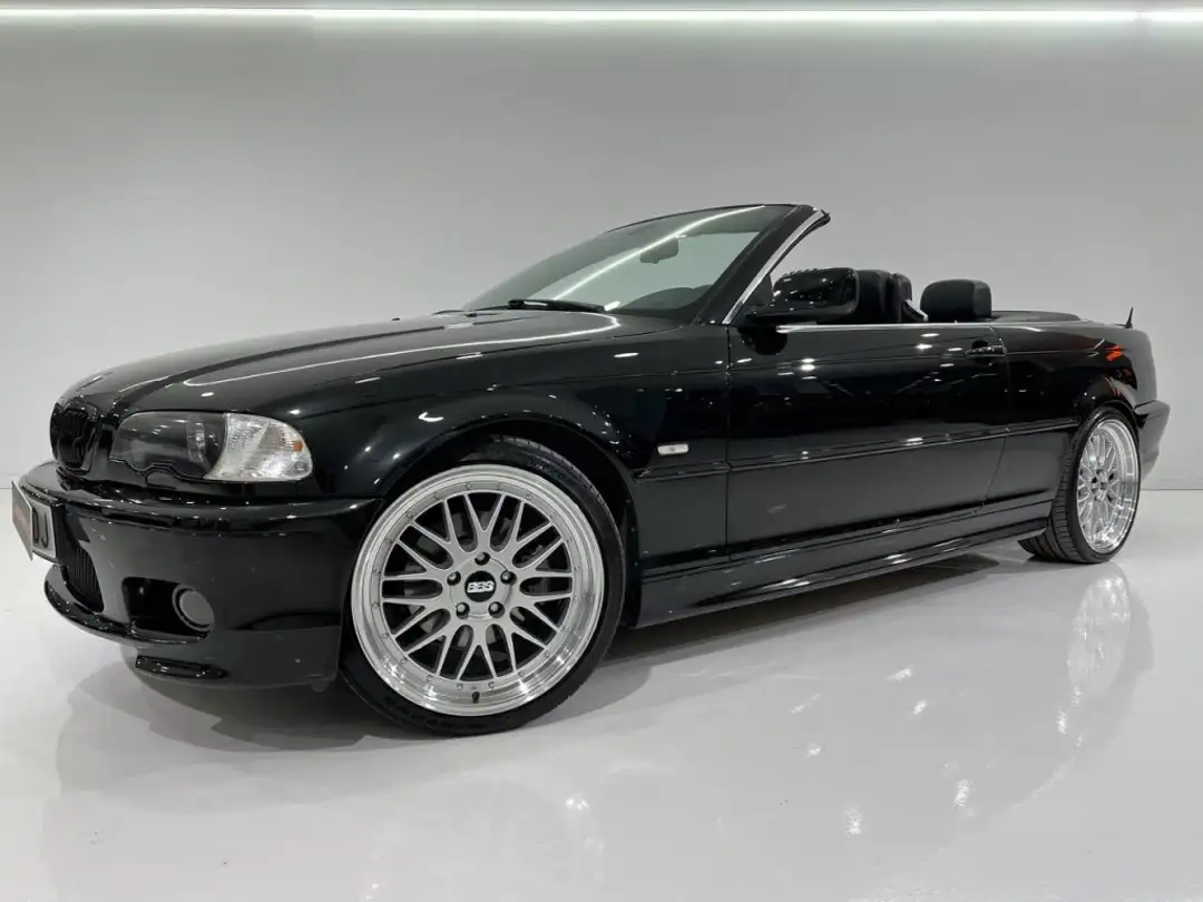BMW 323Ci Cabrio. Cambio manual, asientos eléctricos con memoria, llantas réplica BBS Le Mans en doble medida de 19". Tratamiento de hidratación interior y tratamiento cerámico en pintura exterior. Conserva su paravientos y accesorios originales.