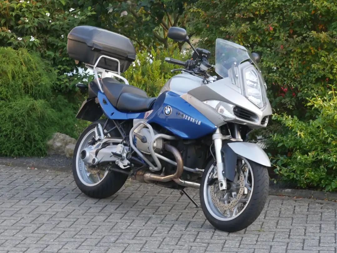 Gepflegte BMW R 1200 ST in blau mit SW-Motech Sturzbügeln, Hepco & Becker Topcase, Mittelständer, Garmin-Navigationsgerät, Superbikelenker, Tankrucksack, Heizgriffe, USB-Steckdose am Lenker, Kofferhalterung und ABS. Scheckheft vorhanden mit insgesamt 4 Eintagungen.
