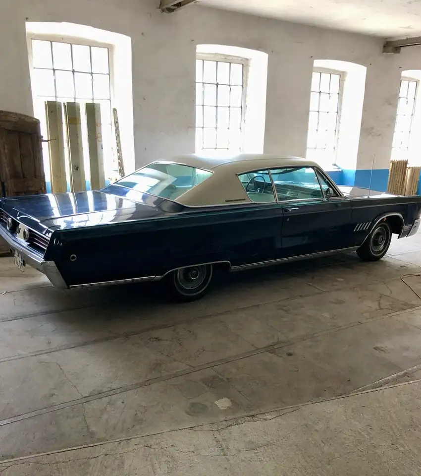 Couleur et Garnissage Intérieur CHRYSLER 300 coupè , colore blu non originale, interni bianchi in vinile rifatti nuovi nel 2022, poggiatesta anteriori e sedile passeggero reclinabile a 45 gradi, aria condizionata non completa, alza cristalli manuali, aiuti alla sterzata dx + sx, cerchi diametro 14 opzionali ( turbine wheelcovers ) freni a tamburo originali, targa italiana dal 2022, revisione da fare, meccanica completamente revisionata nel 2017.