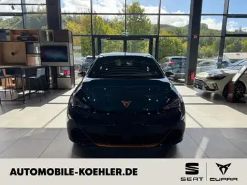 - Weiteres: Antriebs-Schlupfregelung (ASR), Mittelarmlehne vorn, Rückfahrkamera, Rücksitzlehne geteilt/klappbar (1/3-2/3), Notrufsystem, LM-Felgen, Isofix-Aufnahmen für Kindersitz an Beifahrersitz und Rücksitz (inkl. i-Size-Kindersitze), USB-Schnittstelle vorn (2-fach, Typ C), Seitenairbag vorn mitte (Central Airbag), Schließ-/Startsystem Kessy Advanced, 5 Lautsprecher, Elektromotor 170 kW (cont. 70 kW), Lenkrad heizbar (CUPRA Supersport, Leder) mit Multifunktion und Schaltfunktion, Heckleuchten Voll-LED mit Lichtband (Infinite Light), Außenspiegel elektr. verstell-, heiz- und anklappbar mit Spiegelabsenkung und Welcome Light, HV-Batterie 82 kWh brutto / 77 kWh netto, Audio-Navigationssystem mit Touchscreen Farbbildschirm, Scheinwerfer Voll-LED, Mittelarmlehne hinten, Sonderlackierung Exclusive, Sitzbezug / Polsterung: Mikrofaser blau, Audiosystem: Sennheiser Sound-System (425 Watt), Mobile Online Dienste Cupra Connect plus, Sitze vorn elektr. verstellbar (mit Massagefunktion), Lendenwirbelstütze Sitz vorn links, elektr. verstellbar, Protect-Paket, Wegfahrsperre (elektronisch), Kopf-Airbag-System, Reifenkontroll-Anzeige, Seitenairbag, Ambiente-Beleuchtung LED, Licht- und Regensensor, Airbag Fahrer-/Beifahrerseite, USB-Ladeanschlüsse (2-fach, Typ C) für 2.Sitzreihe, Seitenscheiben ab 2.Sitzreihe und Heckscheibe dunkel getönt (Privacy Glass), Türgriffschalen außen beleuchtet, Abbiege- und Allwetterlicht, Akustischer Fußgängerschutz, Außensound (e-sound / AVAS), Autom. Distanzregelung (ACC / PCC) mit vorausschauender Geschw.-Regelung, Automatische Distanzregelung (ACC), Beifahrerairbag abschaltbar, Blinkleuchten LED in Außenspiegel integriert, Bluetooth-Schnittstelle mit Freisprecheinrichtung, Climatronic 2-Zonen, Diebstahl-Warnanlage mit Innenraumüberwachung und Abschleppschutz, Dinamica-Paket, blau, Einparkhilfe vorn und hinten, Elektron. Stabilitätskontrolle (ESC), Fahrprofilauswahl (CUPRA Drive Profile), Fensterheber elektrisch vorn und hinten mit Komfortschaltung, Fernlichtassistent, Frontkamera, Fußraumbeleuchtung LED, Induktionsladeschale für Smartphone, Innenspiegel mit Abblendautomatik, Kombiinstrument digital (virtual cockpit), Müdigkeitserkennung, Parkbremse elektrisch, Pedale Aluminium-Design, Pre-Crash-System, Progressivlenkung, Radioempfang digital (DAB+), Scheibenwaschdüsen heizbar, Schnellladevorrichtung (CCS-Ladedose), Service-System: Intelligente Fahrzeugvernetzung (Car2X), Servolenkung elektro-mechanisch, Sitze vorn mit ausziehbarer Oberschenkelauflage, Sitzheizung vorn, Sitzhöhenverstellung Fahrersitz, Sport-Schalensitze vorn, Sprachsteuerung, Spurhalteassistent, Tech-Paket M, Umfeldbeobachtungssystem (Front assist) mit City-Notbremsfunktion, Verkehrszeichenerkennung, Wärmeschutzverglasung