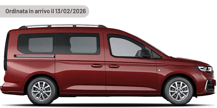 Sedile passeggero con regolazione manuale a 4 vie, Cerchi in lega da 16", Sedili in tessuto, Sistema di monitoraggio pressione pneumatici, Paraurti posteriore in tinta carrozzeria, Fari anteriori alogeni, Post impact breaking (azionamento freni automatico a inizio impatto), FordPass Connect, Luci frenata di emergenza lampeggianti, Freno di stazionamento elettrico, Finestrini seconda fila fissi, Mirroring Apple CarPlay/Android Auto, Vernice solida Lava Red, Maniglie portiere non verniciate, Console superiore, Retrovisori esterni riscaldabili e regolabili elettricamente, 2 USB anteriori (45W tipo C), Airbag a tendina (tutte le file di sedili), Airbag centrale fila anteriore di sedili, Alette parasole con specchietto lato guida e passeggero, Belt Minder® sedili anteriori, Camera anteriore per i sistemi di assistenza alla guida, Console centrale con vano portaoggetti aperto, Console centrale con vano portaoggetti chiuso e bracciolo estendibile, Cornici quadro strumenti e pannello infotainment non verniciate, Digital Cluster - Quadro strumenti digitale da 10,25" a colori, Display touchscreen da 10" con controlli del volume e della temperatura, Emergency Brake Assist elettronico, Fari anteriori con funzione Follow Me Home, Finestrini vano portabagagli fissi, Ford Co-Pilot, Guide porte scorrevoli argento, Indicatore usura freni, Luce vano portaoggetti, Luci di cortesia anteriori a LED con luci di lettura, Luci di lettura a LED seconda e terza fila, Maniglia portellone posteriore non verniciata, Navigation System con Radio DAB, Bluetooth e comandi vocali, Pneumatici All Seasons, Predisposizione Alcohol Interlock, Predisposizione gancio traino, Presa 12V abitacolo e bagagliaio, Retrovisori esterni non verniciati, Rivestimento pianale bagagliaio in moquette, Rivestimento vano piedi in moquette, Sedile conducente con regolazione manuale 4 vie, Sedile passeggero ripiegabile (fold flat), Tergicristalli aut