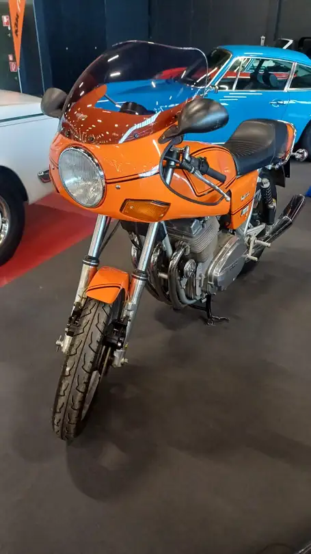 Die Laverda 1000 war bei Ihrer Markteinführung das hubraumstärkste Motorrad in Italien. Der Dreizylindermotor verfügte über 2 obenliegende Nockenwellen. Unsere Jota wurde 1980 erstmals in Italien zugelassen und kam 2015 nach Österreich, wo sie jedoch nie zugelassen wurde. Die schöne Italienerin ist die perfekte Ergänzung für jede Sammlung... Der Verkauf erfolgt im Kundenauftrag unter Ausschluss der gesetzlichen Gewährleistung. \n \n Orange, schwarz