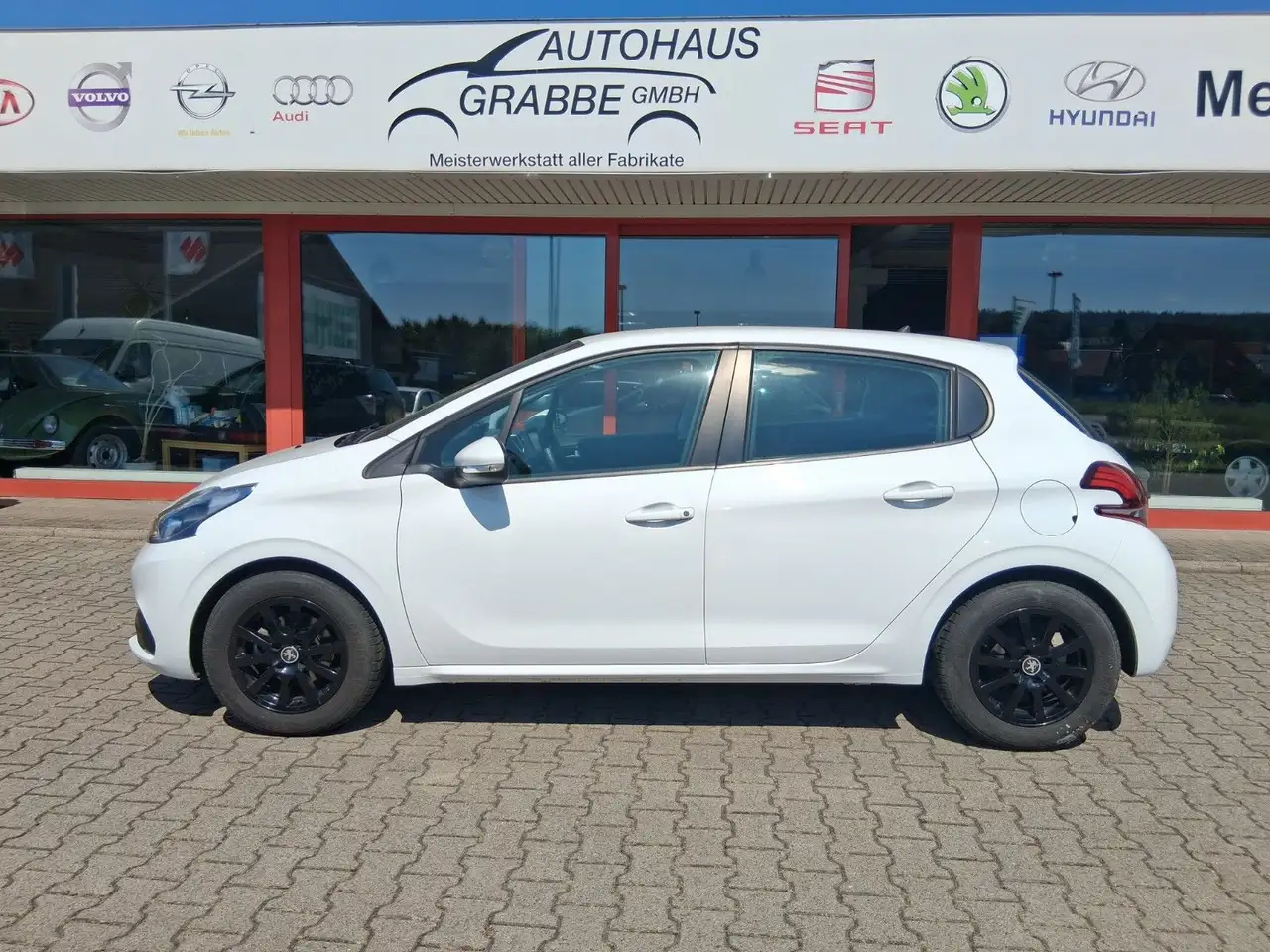 Zum Verkauf steht ein handlicher weißer PEUGEOT 208 mit 1,2l und 61KW/83PS