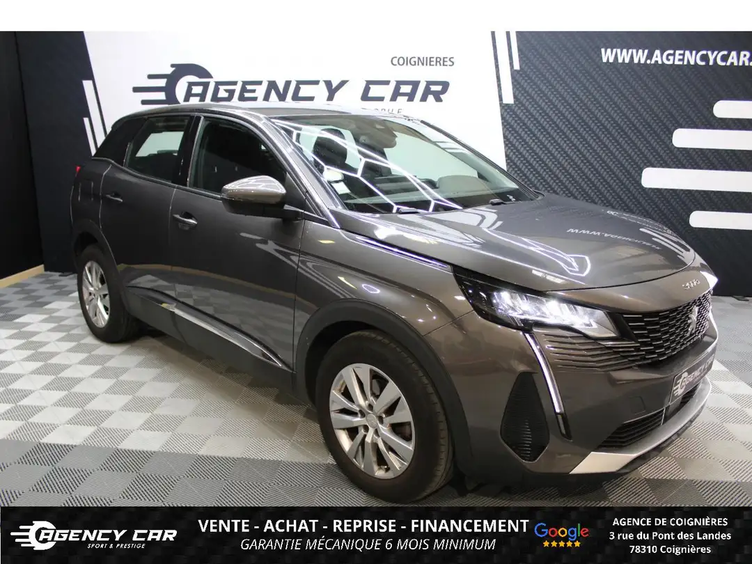 AGENCY CAR showroom automobile situé dans l'ouest parisien vous accompagne depuis 2014 dans vos projets d'achat de véhicules d'occasion. Nous vous proposons PEUGEOT 3008, GRIS , 7 cv, 5 portes, première mise en circulation le 22-03-2021, garantie 6 mois. Véhicule visible UNIQUEMENT SUR RDV à l'agence de Coignières (78). Du mardi au vendredi 10h - 18h30 et le samedi de 9h30 à 17h. - Financement possible de 12 à 72 mois. - Possibilité d'extension de garantie jusqu'à 48 mois. - Livraison dans toute la France (sur devis). - Des erreurs peuvent se glisser dans nos annonces, n'hésitez pas à nous contacter par téléphone pour plus de renseignements. Retrouvez également la vidéo 360° du véhicule sur notre site internet. Les options : Z - FRAIS DE DOSSIER - 690 euros, ABS avec répartiteur électronique de freinage (REF) et aide au freinage d'urgence (AFU), Alerte de franchissement Involontaire de ligne, Drive Mode : Choix de 2 modes de conduite (Eco ou Sport), Fixations pour trois sièges enfants suivant norme ISOFIX aux places passager avant et latérales arrière, Fonction 'Mirror Screen' (Apple Carplay / Android Auto), Frein de stationnement électrique avec aide au démarrage en pente, Lève-vitres électriques avant et arrière, séquentiels et antipincement, Navigation 3D connectée avec reconnaissance vocale, écran tactile capacitif 10' HD, Pack City 1, Peugeot i-Cockpit : combiné tête haute numérique haute qualité d'affichage, écran tactile capacitif 10' HD et volant compact multi-fonctions, Prise USB (dans la zone connectique), Régulateur / limiteur de vitesse avec Préconisation Limitation de Vitesse, Rétroviseurs extérieurs électriques et dégivrants avec répétiteur de clignotant à LED, Sellerie Textile 'Meco' Mistral avec surpiqures Goa, Sièges conducteur et passager avant réglables en hauteur manuellement
