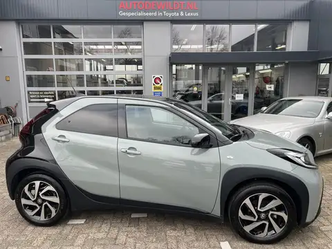 Wij kunnen eigenlijk niet meer spreken van onze kleinste telg in het gamma, maar u kijkt hier naar de Aygo X. In een supergave 2-tone kleurstelling; Urban Khaki & Astral Black.