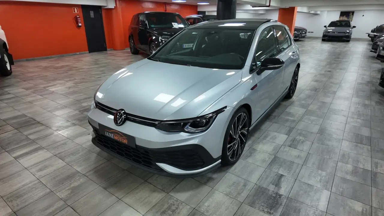 Espectacular¡¡Volkswagen Golf VIII 2.0 Tsi GTI Clubsport 300CV DSG 5p, cambio automatico DSG con levas en volante calefactable,faros LED,llantas 19" color negro,tapiceria tela/alcantara negro/gris/rojo con asientos deportivos tipo bucket calefactables,climatizador de 3 zonas automatico,sistema navegacion tactil con cockpit cuadro instrumentos,volante deportivo de cuero multifuncion calefactable,control crucero velocidad adaptativo,suspension deportiva,mapas de conduccion,bluetooth telefono con carga wifi,control crucero de velocidad adaptativo,techo solar electrico de cristal,sensores aparcamiento delanteros y traseros,camara vision trasera,aviso de cambio de carril involuntario,todos los extras...libro de mantenimiento Volkswagen.