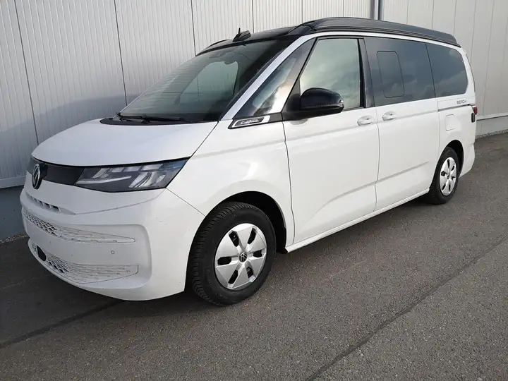 Sonstige: Zulassung als Wohnmobil, Werksanschlussgarantie auf 5 Jahre / max. 100.000 Km. Komfort und Funktion: 230-Volt-Einspeisung mit Ladefunktion für Fahrzeugbatterien, 230-Volt-Steckdose im Innenraum, 230-Volt-Steckdose mit Wechselrichter im Innenraum, Aufstelldach manuell, Faltenbalg grau mit 3 Fenstern und einer Frontöffnung, Faltenbalg in Basalt Grey, Digital Cockpit Pro, Geschwindigkeitsregelanlage elektronisch, Innenbeleuchtung Camper, LED-Hauptscheinwerfer mit LED-Tagfahrlicht, LED-Rückleuchten, Markisenschiene beidseitig in schwarz, Miniküche am Heck mit ausziehbarem einflammigen Gaskocher inkl. Technikbox mit Camper Batterie und 230-Volt-Steckdose, Campingtisch unter Bettverlängerung, 2 Campingstühle in der Heckklappe integriert, Multifunktions-Lederlenkrad mit Schaltwippen, Schlafplätze, 2 Schlafplätze im Aufstelldach oben (1.140 x 2.050 mm), 2 Schlafplätze im Wohnraum unten über gesamte Fahrzeugbreite (1.980 x 1.330 mm), Schubladen im Fahrer- und Fahrgastraum sowie unter den äußeren Sitzen inkl. 2 Abfallbehälter, Sitze, 2. Sitzreihe, 3 Einzelsitze mit Schlafauflage, Sitz Fahrer/Beifahrer drehbar mit Armlehnen an den Vordersitzen, beidseitig, mit elektrischer Lendenwirbelstütze, Sprachsteuerung plus ICC (InCarCommunication), Schiebetür links und rechts, Verdunklungssystem mit Rollos und Gardinen, Zentralverr. "Keyless Start, Optik: Außenspiegelgehäuse in Schwarz hochglanz, Bodenbelag Kunststoff im Fahrgast-/Laderaum, Dekoreinlagen "Scale Light Grey", Fenster ab B-Säule abgedunkelt, 65% lichtabsorbierend, Scheinwerferleiste schwarz, Schiebefenster in der Schiebetür links und rechts, Infotainment: Wireless Mirror Link/App-Connect, Navigation über App Connect möglich (kompatibles Smartphone erforderlich), Radio "Ready 2 Discover" mit 25,4 cm (10") Touch-Farbdisplay, Lautsprecher 8 Stück, Bluetooth Schnittstelle, USB-C-Schnittstelle vorne & hinten, 2 USB vorne, 4 USB im FGSTR, Sicherheit und Fahrerassistenz: Ablenkungs- und Müdigkeitserkennung, Außenspiegel elektrisch einstell-, beheiz- und anklappbar, Einparkhilfe im Front- und Heckbereich, Notbremsassistent "Front Assist", mit Fußgänger- und Radfahrererkennung, Spurhalteassistent "Lane Assist", Tagfahrlichtschaltung mit Assistenzfahrlicht, Verkehrszeichenerkennung, Räder: Stahl 6,5 J x 16.