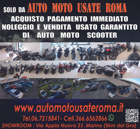 Horaires d'ouvertureNata nel 2013 da un esperienza pluriennale maturata nel settore e dalla fervida passione per motori di Eros Ranini, Auto Moto Usate Roma ha rapidamente trasformato un sogno in realtà. L'idea era semplice ma ambiziosa: creare un punto di riferimento unico a Roma per chi desidera acquistare o vendere auto e moto usate con la massima trasparenza e affidabilità. Spinto da un profondo amore per i veicoli a due e quattro ruote, Eros Ranini ha voluto costruire un ambiente dove la compravendita non fosse solo una transazione commerciale, ma un vero e proprio scambio tra appassionati. Fin dai primi giorni, l'attenzione si è concentrata sulla qualità e la diversità dei veicoli offerti, sulla cura del cliente e sulla creazione di un rapporto di fiducia duraturo. Nel corso degli anni, Auto Moto Usate Roma è cresciuta costantemente, diventando un nome riconosciuto nel panorama romano per la serietà e la competenza dimostrate. La dedizione alla selezione accurata di ogni veicolo, unita a un servizio clienti attento e personalizzato, ha permesso all'azienda di fidelizzare una clientela sempre più vasta ed esigente. Oggi, Auto Moto Usate Roma sita in via Appia nuova n.23 a Marino(Rm) continua a portare avanti la visione originaria di Eros Ranini: essere non solo un concessionario di auto e moto usate, ma un vero e proprio luogo d'incontro per chi condivide la passione per i motori, offrendo un'esperienza di acquisto e vendita unica e soddisfacente, aumentando continuamente la diversità di veicoli e servizi offerti. Tra i molteplici servizi citiamo alcuni tra i più importanti come l'acquisto con pagamento immediato, il conto vendita, le permute auto con moto e viceversa, il noleggio breve e lungo termine, finanziamenti personalizzati, le assicurazioni e le consulenze per vendere o acquistare veicoli da privati. La storia di Auto Moto Usate Roma è la storia di una passione che si tramanda su strada, chilometro dopo chilometro da scrivere e percorrere insieme ai suoi clienti.