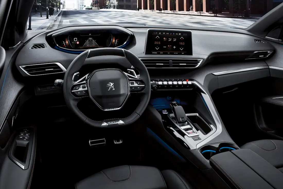 Aussi robuste que soit son extérieur, aussi élégant est l'intérieur du nouveau 5008. La position assise et le petit volant bas ne conviendront peut-être pas à tout le monde, mais le design est indiscutable.