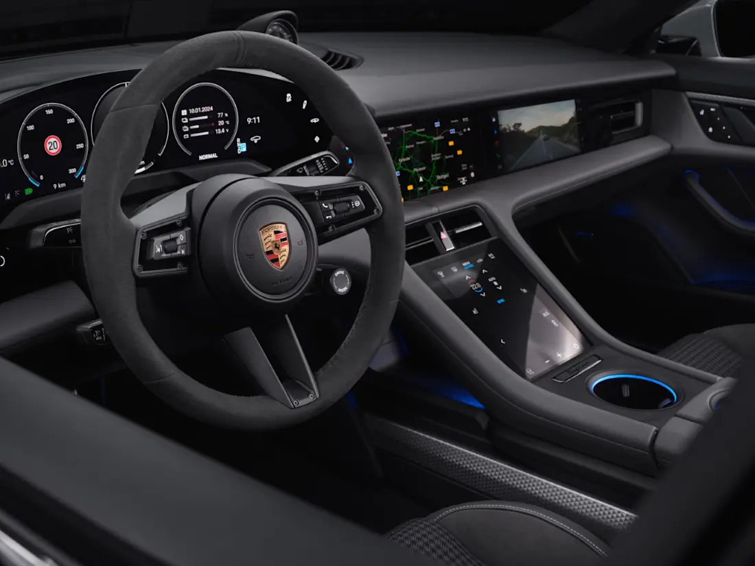 Pour 2024, la gamme de la Taycan a reçu une mise à jour qui inclut une plus grande autonomie et une version plus agressive qui est aussi instantanément la Porsche la plus puissante de tous les temps ! En effet, associée au " Pack Weissach " et en mode " Launch Control ", la Taycan Turbo GT affiche une puissance maximale de 815 kW (1 108 ch) et un couple monstrueux de 1 340 Nm, pour un sprint de 0 à 100 km/h en... 2,2 secondes ! Cette version n'est disponible que sur la Taycan berline, et non sur les deux autres variantes de carrosserie, où la " Turbo S " de 952 ch est la version la plus forte. Bien entendu, il existe également des versions plus modérées de la Taycan, qui offrent toujours des performances sportives et permettent de parcourir jusqu'à 634 km avec une batterie entièrement chargée. Cette recharge est ultra-rapide grâce à une architecture de 800 V, avec une puissance maximale de 320 kW DC. À l'exception de la Taycan " de base " à propulsion et 408 ch (Taycan et Taycan Sport Turismo uniquement), toutes les versions sont à quatre roues motrices. La gamme Taycan Cross Turismo est toujours à transmission intégrale et est équipée de série d'une grande batterie (104,9 kWh) et d'une capacité de charge allant jusqu'à 320 kW.